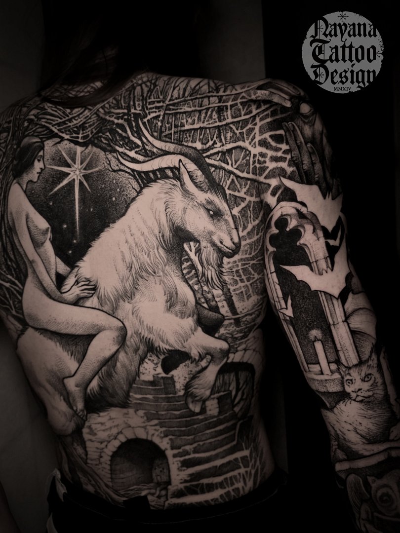 witch-riding-goat-magic-back-tattoo-nayana-tattoo-blackwork-illustrative